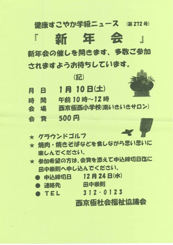新年会の催しを開きます。多数ご参加されますようお待ちしています。