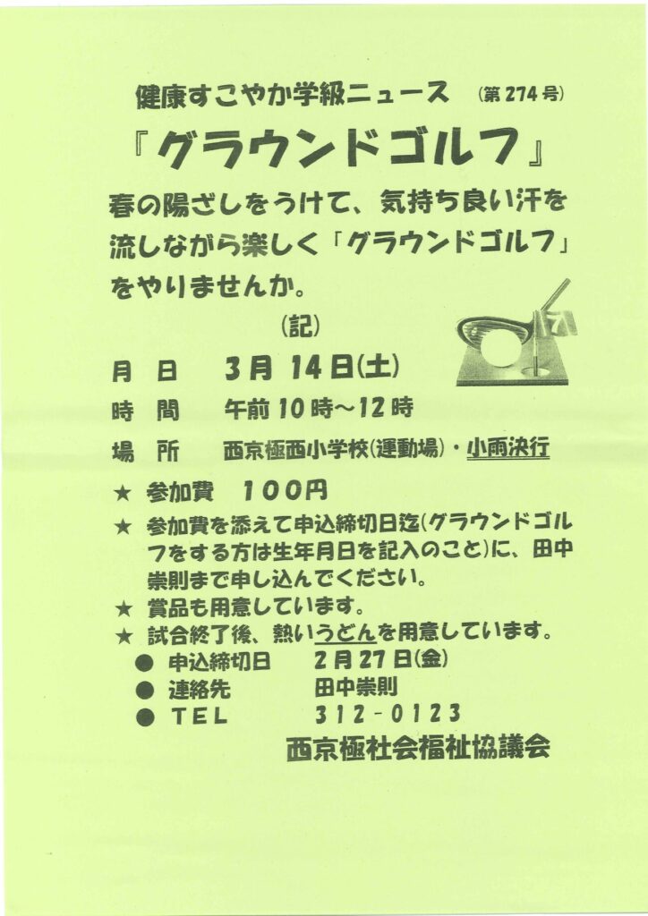 春の陽ざしをうけて、気持ち良い汗を流しながら楽しく「グラウンドゴルフ」をやりませんか。